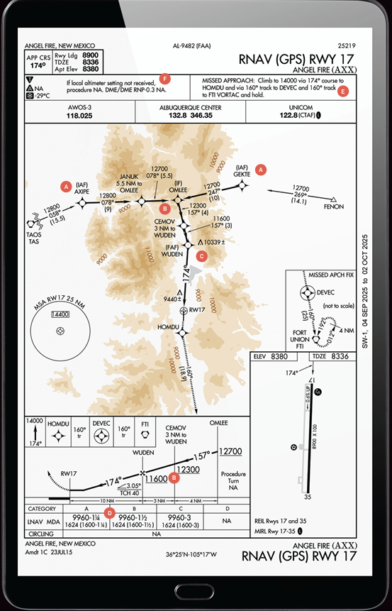 If you are headed up into the New Mexico mountains near Angel Fire for some winter skiing or summer mountain biking or hiking, you might just find yourself flying the one and only approach the airport (KAXX) has—the RNAV GPS to Runway 17.