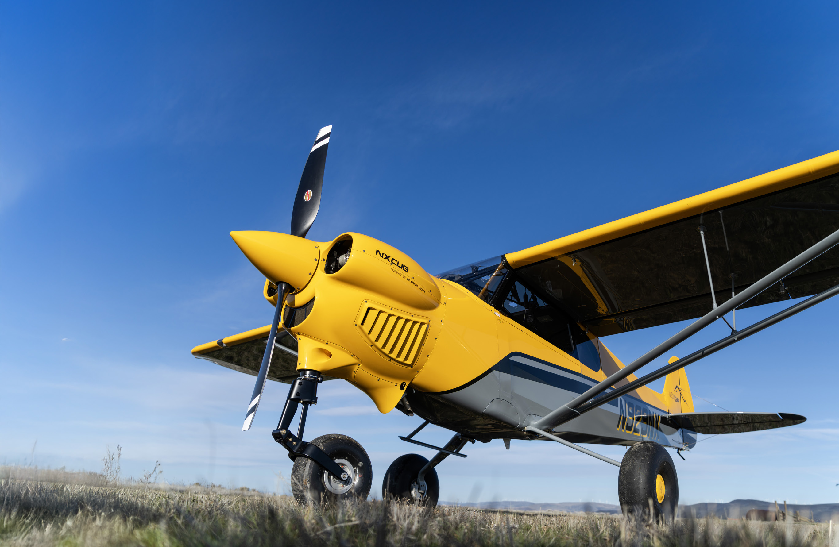 To add insult to the tailwheel snobs, the NXCub takes off and lands shorter than the XCub, which is the same airplane with the gear positioned differently. On takeoff, the NX fuselage is already level rather than in the high-drag, nose high position. While on landing, there’s no limit to how hard the brakes are applied as the trailing beam nose gear soaks up the load and doesn’t let the prop hit the ground, much less the airplane do an outside half-loop centered on its nose.