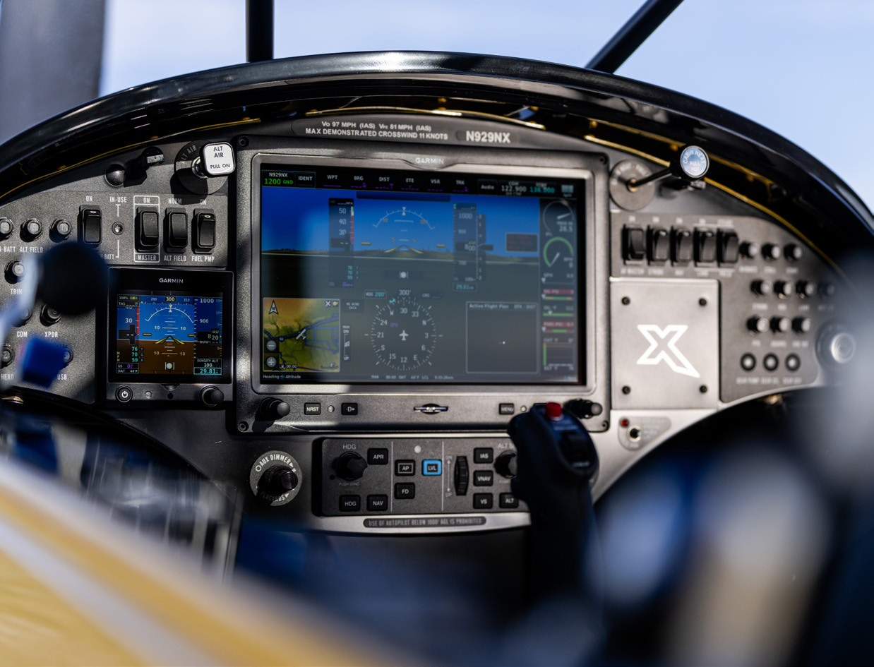 The NXCub we flew was equipped with a Garmin G3X Touch screen system with a 10.6-inch display, GTR 20 comm, GTX 345R transponder, G5 attitude indicator, GDL 84 ADS-B package, Garmin dual-axis autopilot, and stereo intercom. The autopilot includes a “level” feature, so should things start going wrong due to weather and/or pilot disorientation, one push brings the aircraft into level flight.