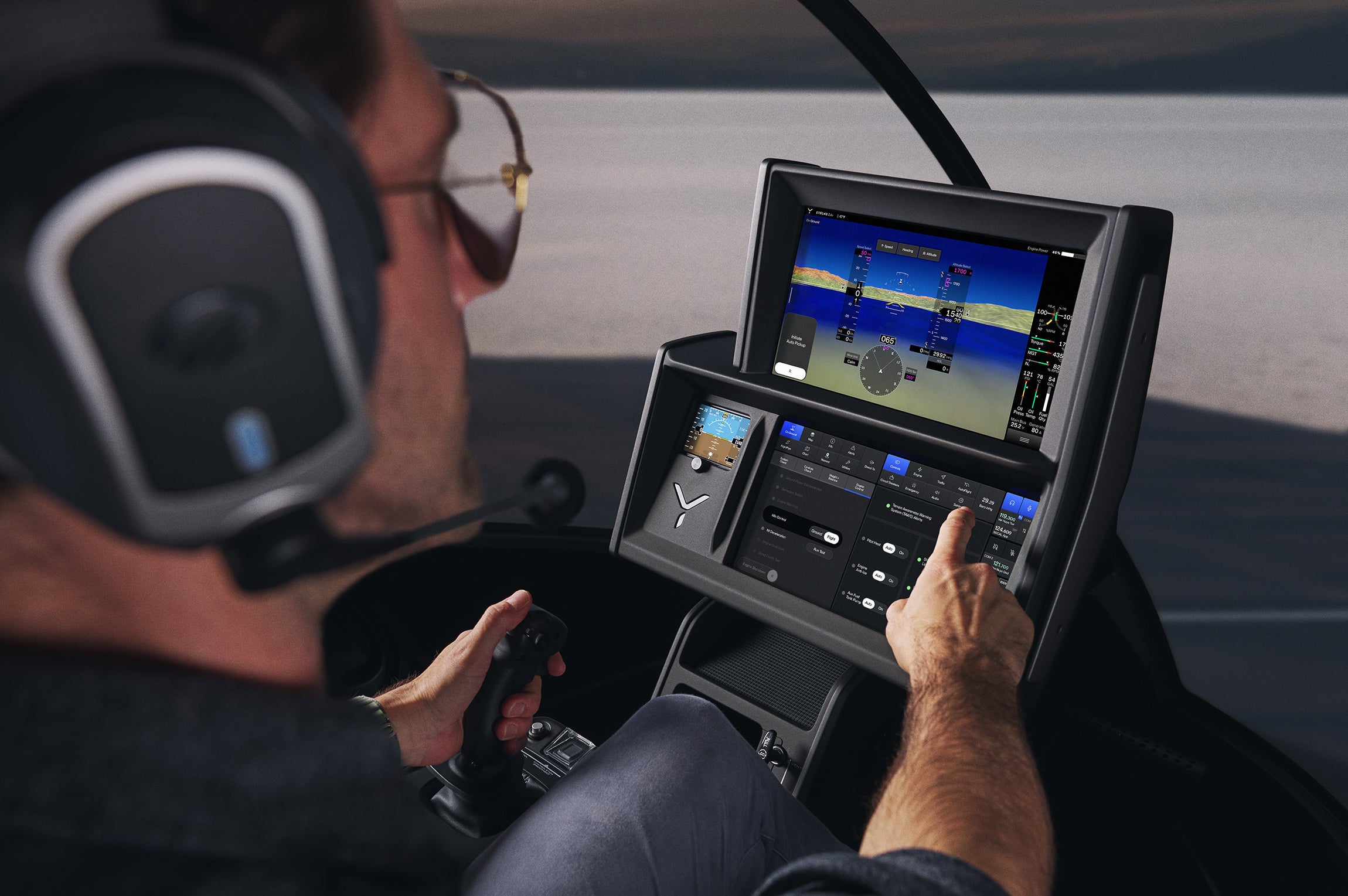 For 85 years, virtually all helicopters have flown using the same controls—cyclic, collective, and pedal controls—that Igor Sikorsky first demonstrated in 1940. So, the most noticeable difference about Skyryse One is it uses a single control stick and nothing else.
