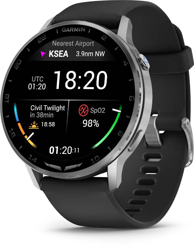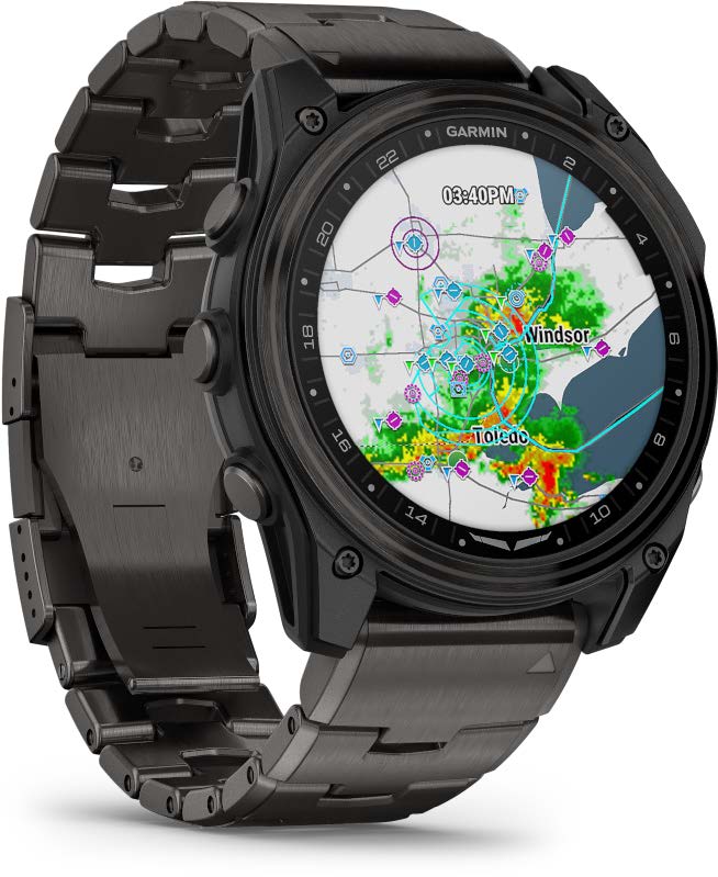 Garmin’s latest aviator smartwatches, the D2 Air X15 and D2 Mach 2, bring flight-deck functionality directly to your wrist. The D2 Air X15 pairs a bright display with avionics connectivity, voice commands, and a built-in LED flashlight for preflight checks or night ops. Stepping up the capability, the D2 Mach 2 adds detailed aviation maps and weather alerts that flag conditions beyond personal minimums. If your aircraft has PlaneSync, you can check status information remotely, including fuel, database, and location.